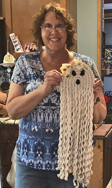 Marie was helping her grandson who wanted to make a project, too. She decided to concentrate on a hanging ghost, and made the sweetest girly ghost. We all loved it!